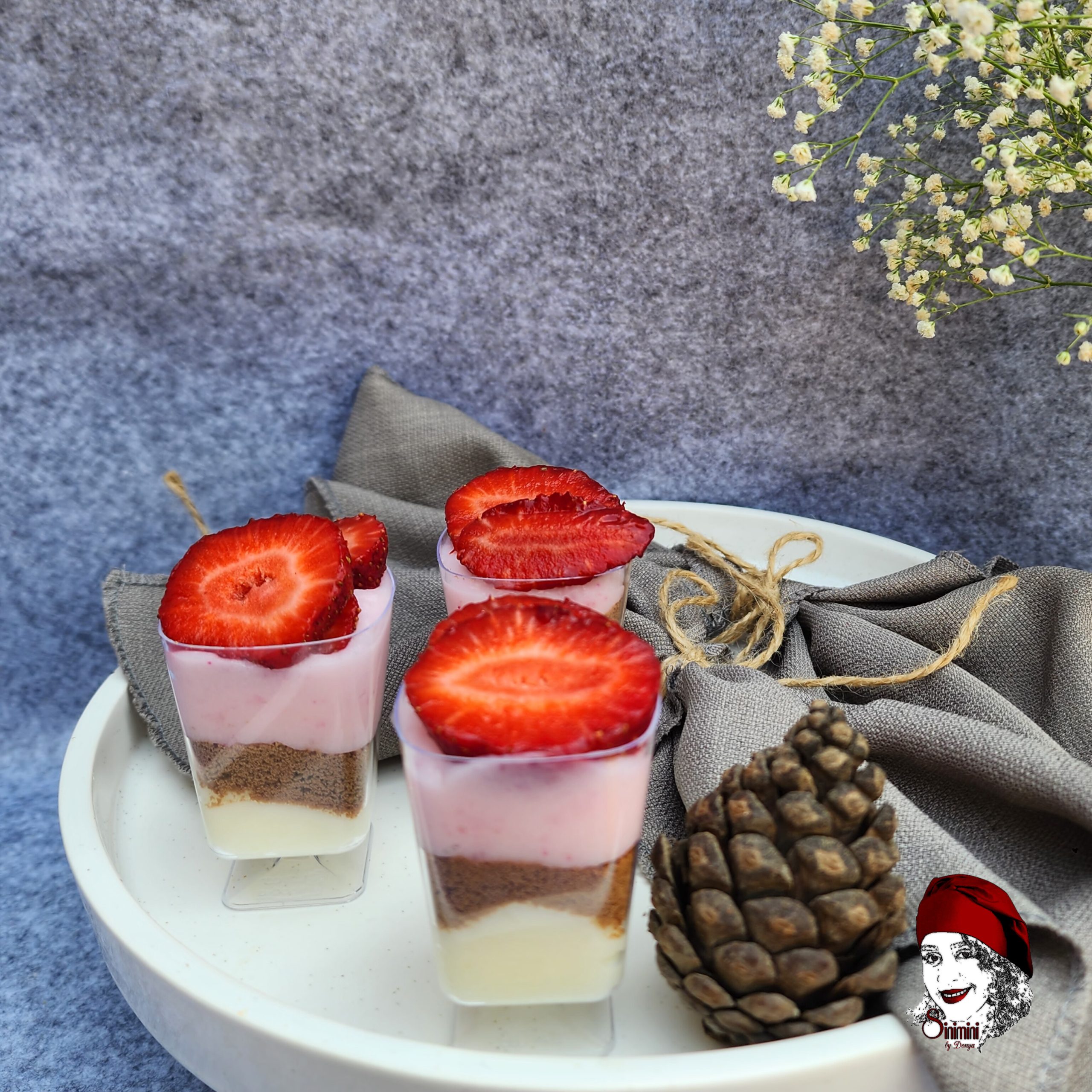 یک ترکیب جذاب از دسر توت فرنگی و وانیل به همراه لایه ی میانی بیسکویت خیلی جذابه