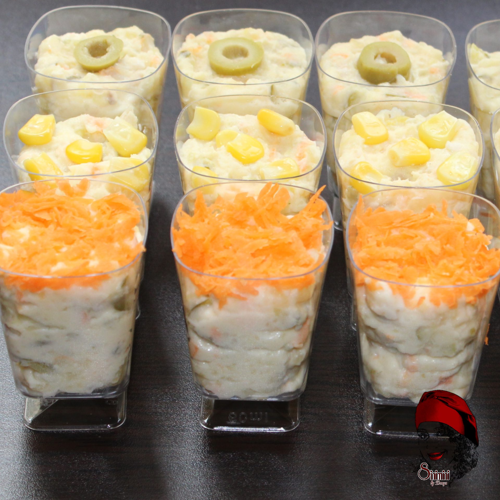سالاد الویه مرغ سینی مینی در دو مدل: 1- سالاد الویه مرغ کیلویی 2- شات تک نفره سالاد الویه مرغ (با حداقل سفارش 10 عددی) قابل سفارش می باشد.