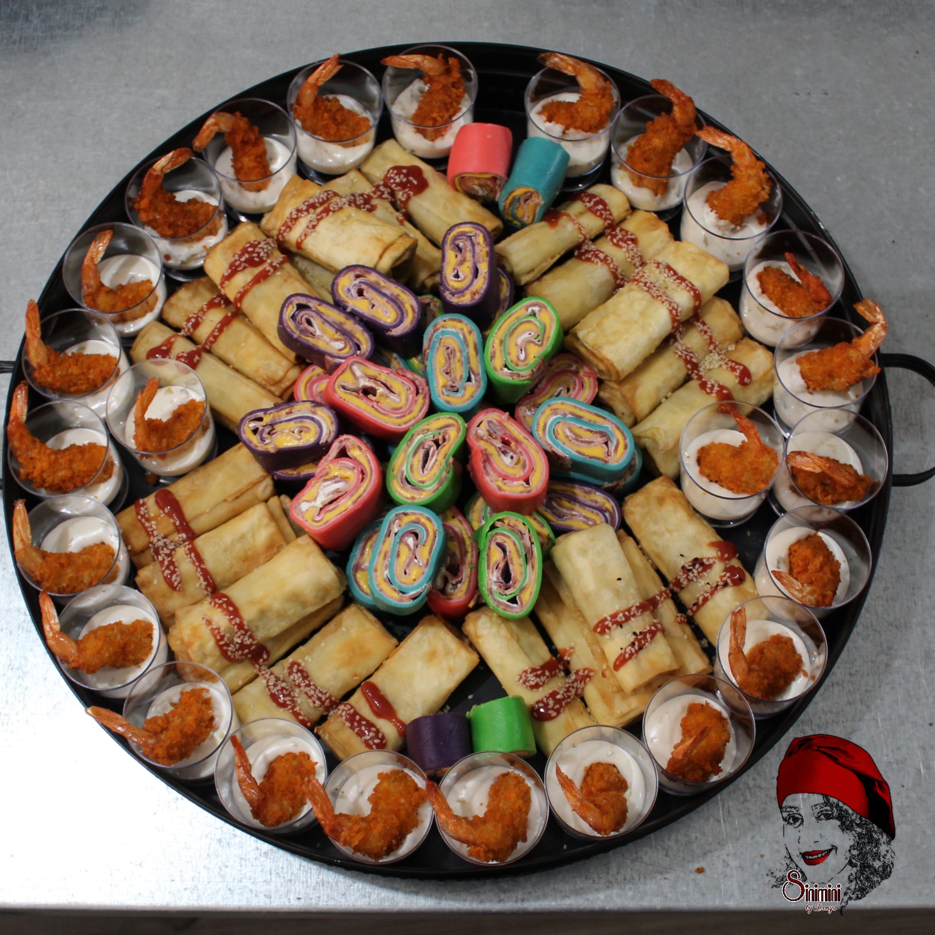 ۲۰ عدد اسپرینگ رول مرغ, ۲۰ عدد شات میگو سوخاری, ۲۰ عدد کرپ رول ژامبون